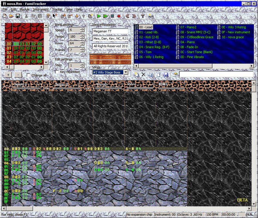 it's a bit tiring to come on the boards and see "can you add skins? can you make it import/export XM/MIDI? can you add rock band guitar support? can you add VRC12? can you make it cook hot buttered popcorn" when even some of the basic stuff isn't perfect. this isn't an attack on anyone specifically, just general exasperation with some of the pipe dreams people are coming out with lately. maybe as a compromise a NES+famicom-style colour scheme could be added as an option for the patterns but I think any more than that, particularly at this stage, would be superfluous.