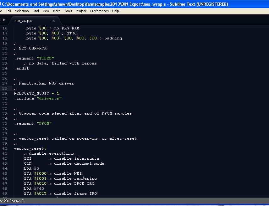 C:\Documents and Settings\shawn\Desktop\famisamples2013\BIN Export>bin\ca65 nes_
