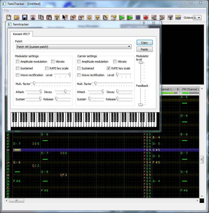 Update: VRC6 and VRC7 instrument dialogs implemented. Keyboard gfx on instrument dialog implemented [with a minor-but-annoying overreach bug somewhere in CDC::BitBlt that I'm looking into but doesn't otherwise break anything].