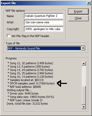 also I want you to know that it's no longer a problem - I tried letting 0.3.0 build the NSF and it did so without complaint, without reproducing the bug and even optimising the file by 10k! So I guess I'll be embracing the most recent version of my favourite tracker